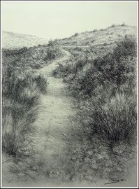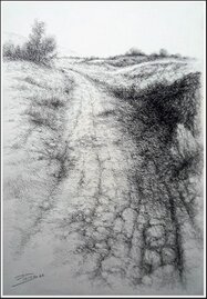"Path II" Pitt charcoal on cream grey cardboard 70 × 50 cms.