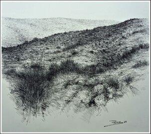 "Desert Hill" Pitt charcoal on cream grey cardboard 48 × 58 cms.