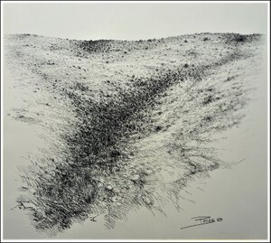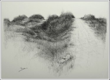 "Dune" Pitt charcoal on white paper 56 × 77 cms.