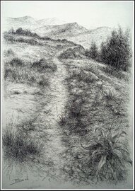 "Top of the Hill" Charcoal, acrylic and chalk on paper 24 x 33 cms.