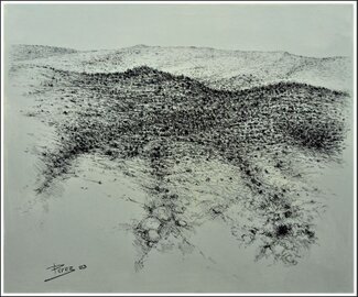 "Hill IV" Pitt charcoal on cream grey cardboard 53 × 60 cms.